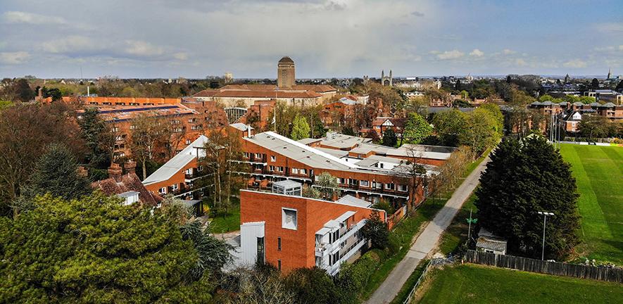 St Edmund's College is located on a leafy 10-acre site, a short 15-minute walk from the city centre. The College is perfectly positioned to offer both a taste of city life and a tranquil spot, nestled among fruit orchards and garden spaces designed by RHS Chelsea Flower Show 2024 winner, Robert Myers. All of our student accommodation is located on the College site.